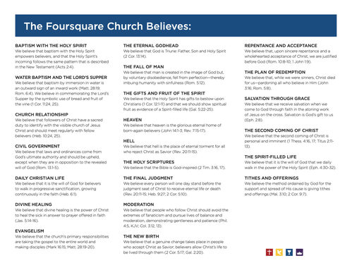 Since Foursquare began, we’ve stayed true to our doctrine and founding statement of faith. Though ways of doing church may change with time, cultures and contexts, our message remains anchored in God’s Word.